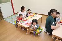 ■5/9 給食の時間(にんじん・なす・りんご・ぶどう・みかん)