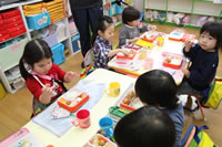 ■11/11 給食の時間(ピーマン・あんず・メロン)