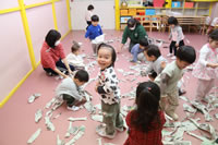 ■12/16 新聞紙遊び(ピーマン・あんず・メロン)
