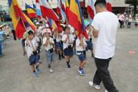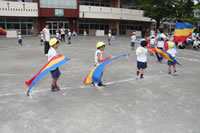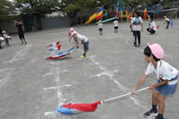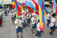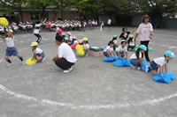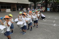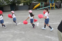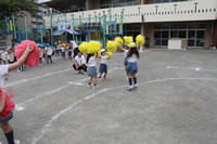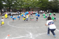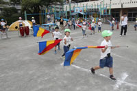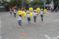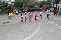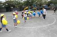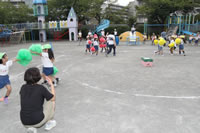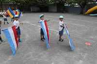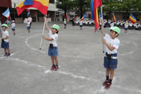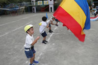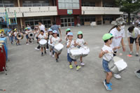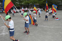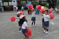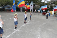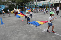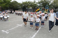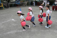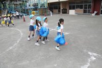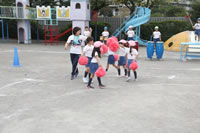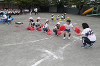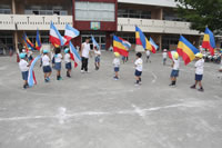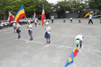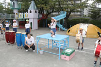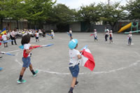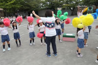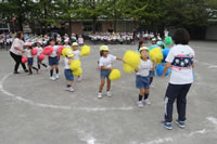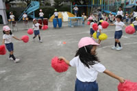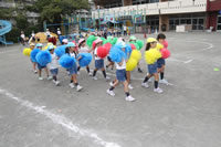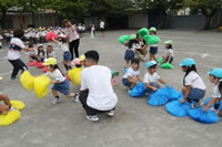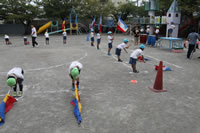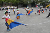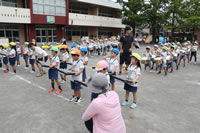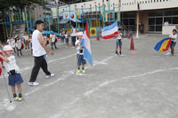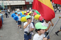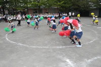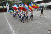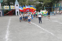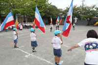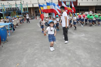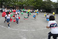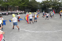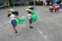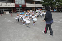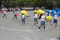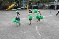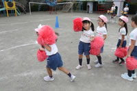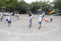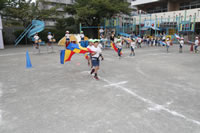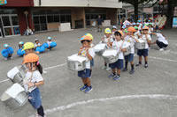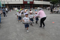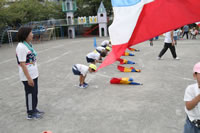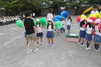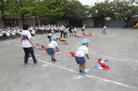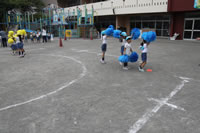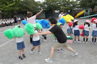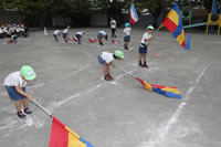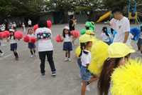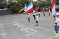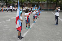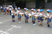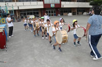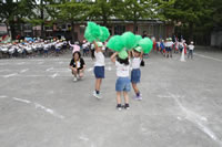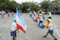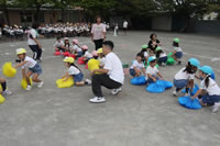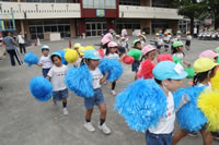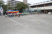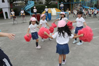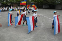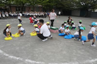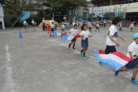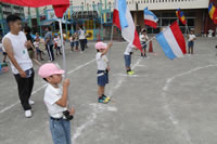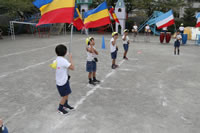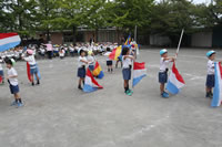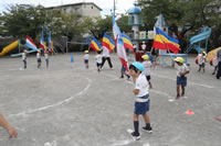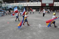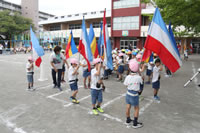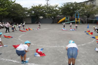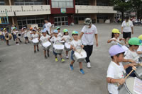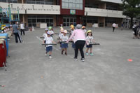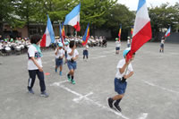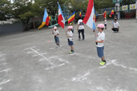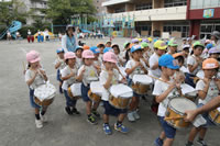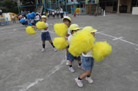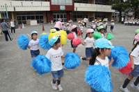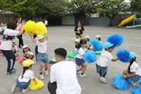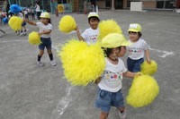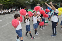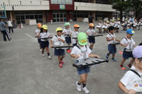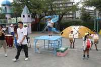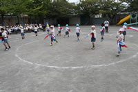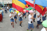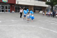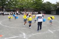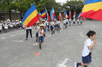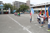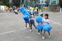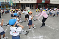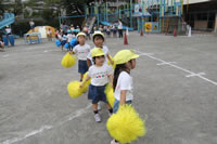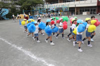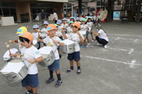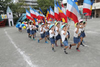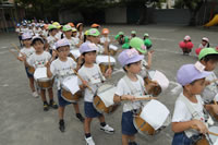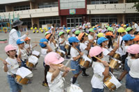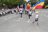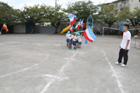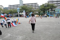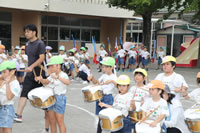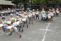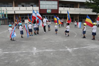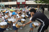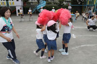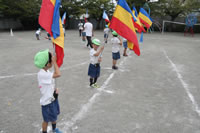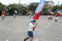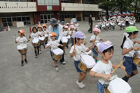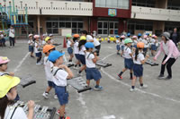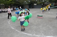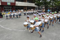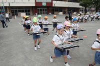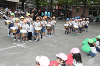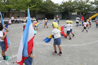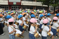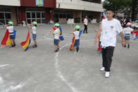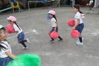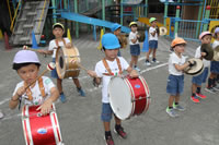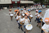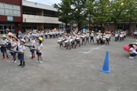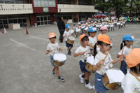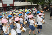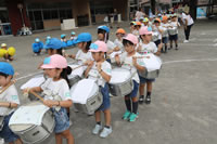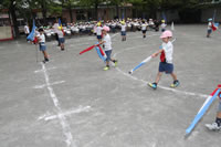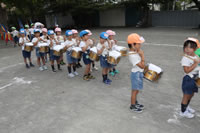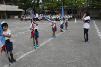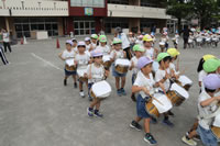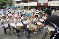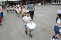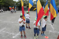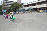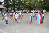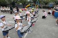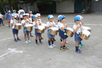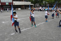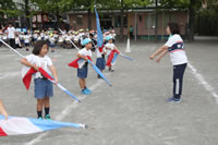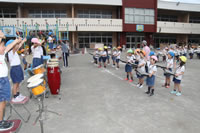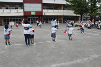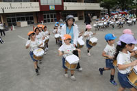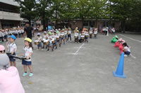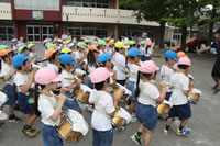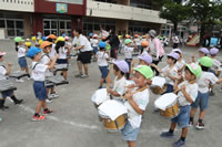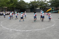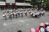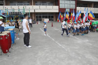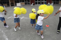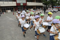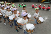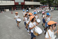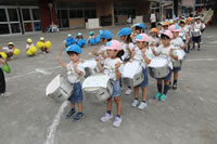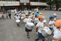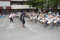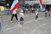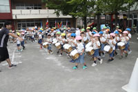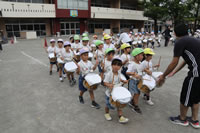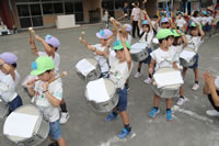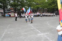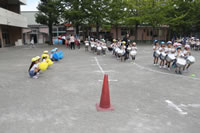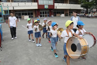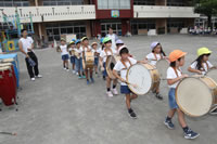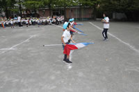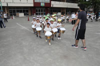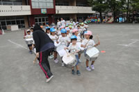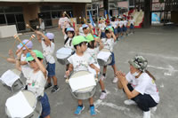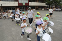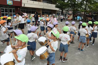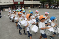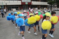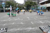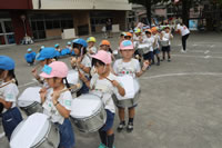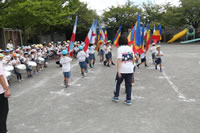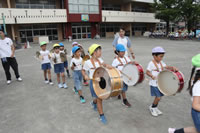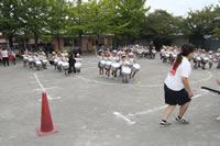 本番と同じように音楽に合わせて、振り付けをしたり歩いて隊列を変えたりと練習しました。