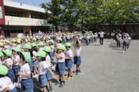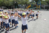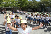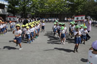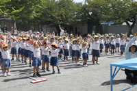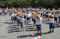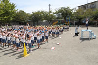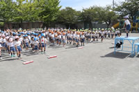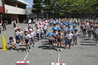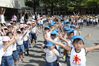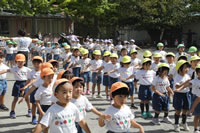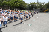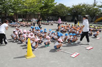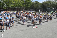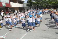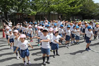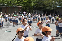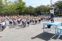 朝の体操の際、運動会と同じように入場行進とたけのこ体操の練習も始まっています。