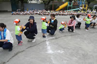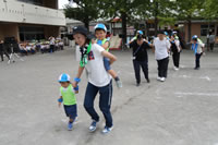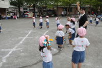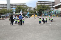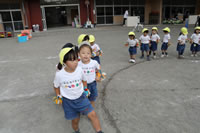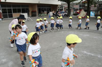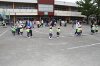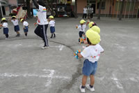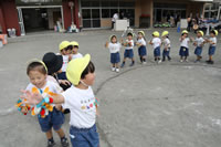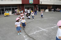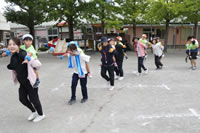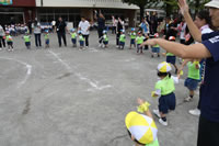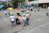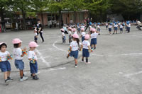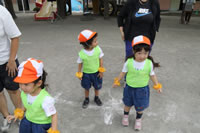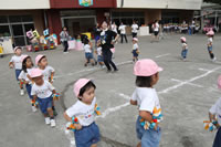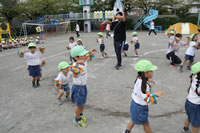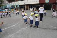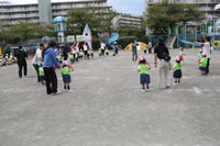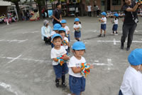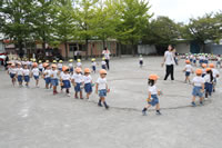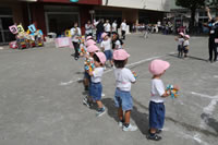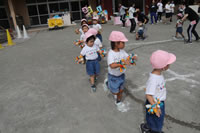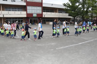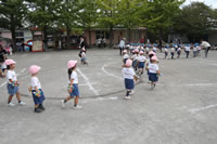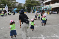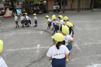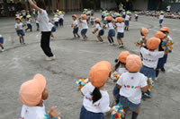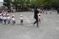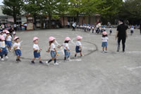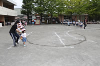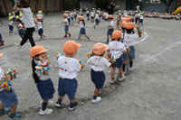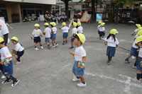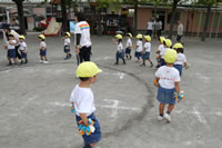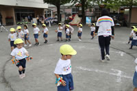今日はひな・ひよこ組と年長の鼓隊パレードの練習。
