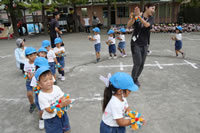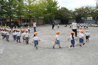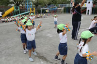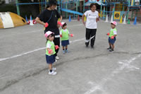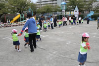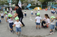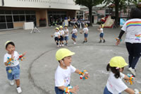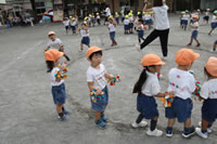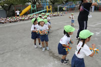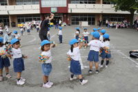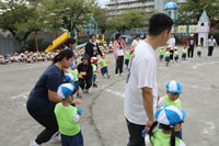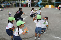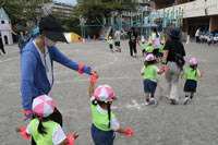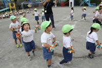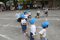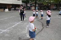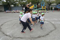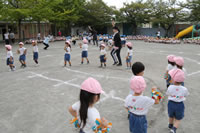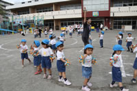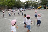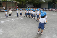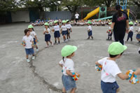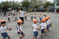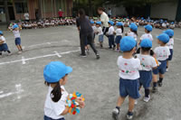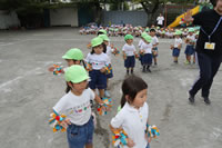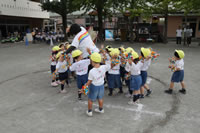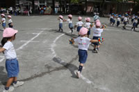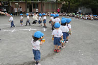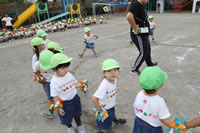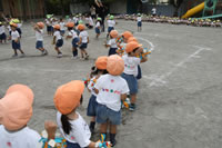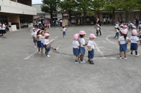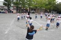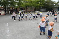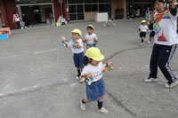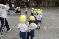 いよいよ運動会の日が近づいてきて、幼稚園では予行演習を行いました。