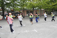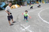 朝に入場行進と体操をしたら、リズム体操にかけっこ競技に玉入れと、本番さながらの熱気で練習しました。