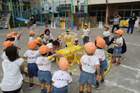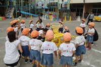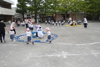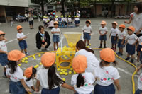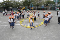 今日はひな・ひよこ組と年長の鼓隊パレードの練習。