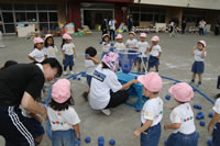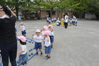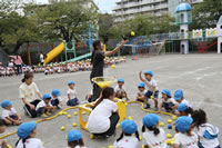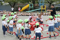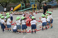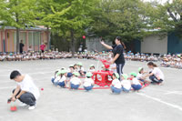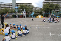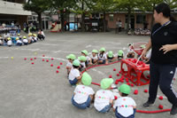 いよいよ運動会の日が近づいてきて、幼稚園では予行演習を行いました。