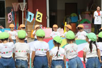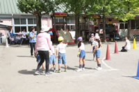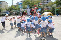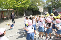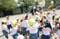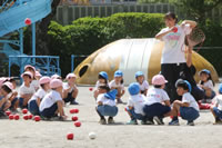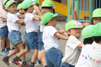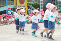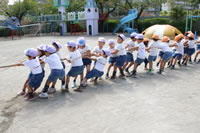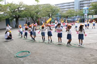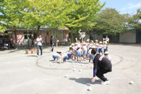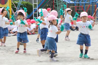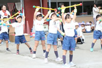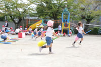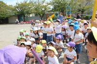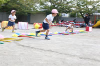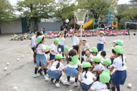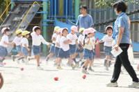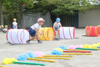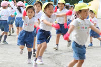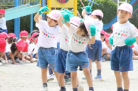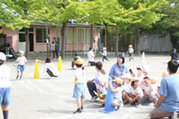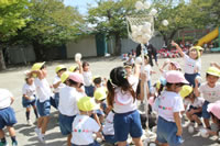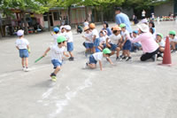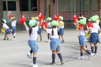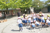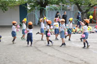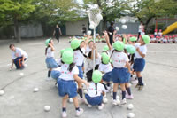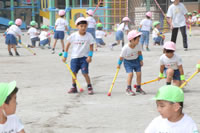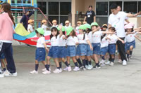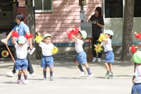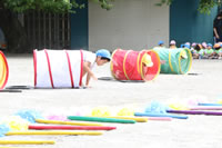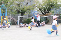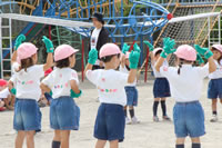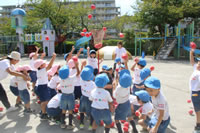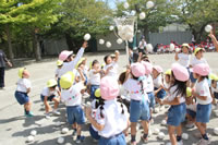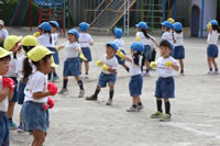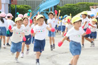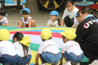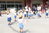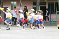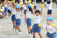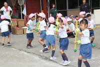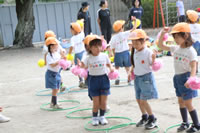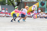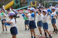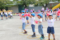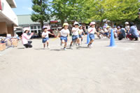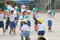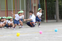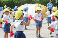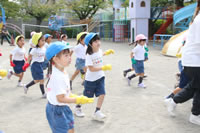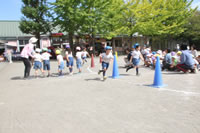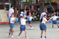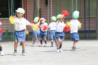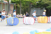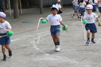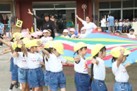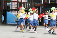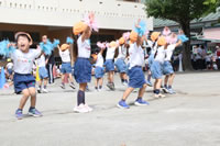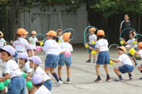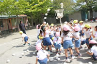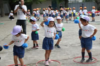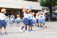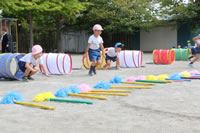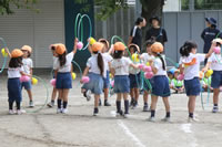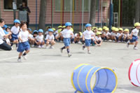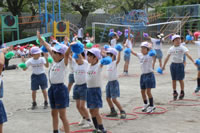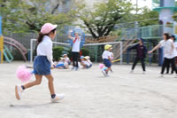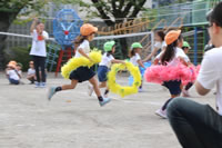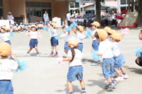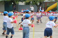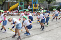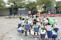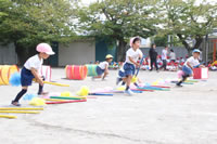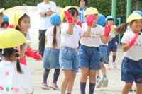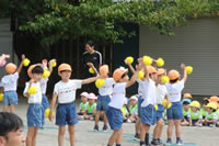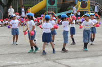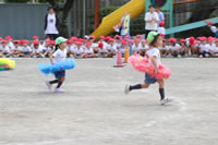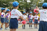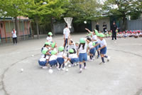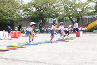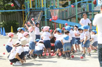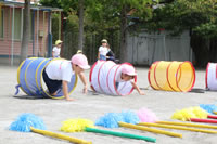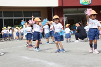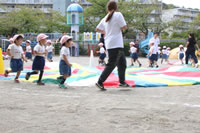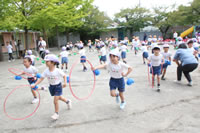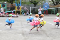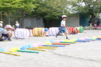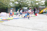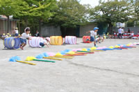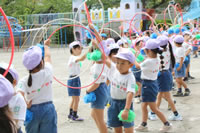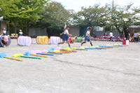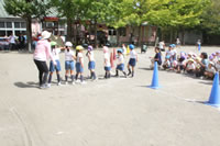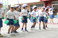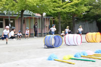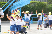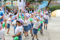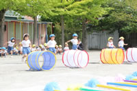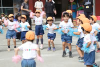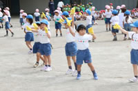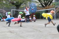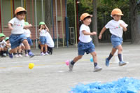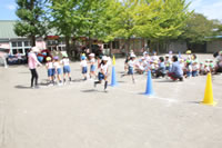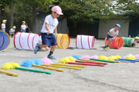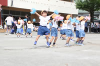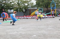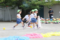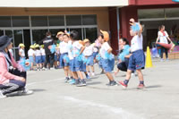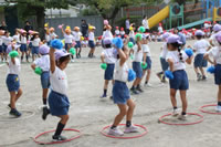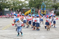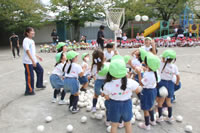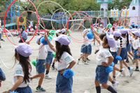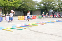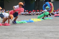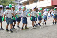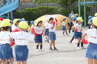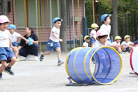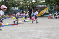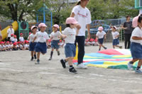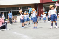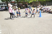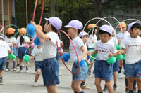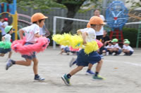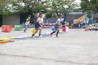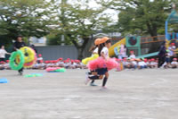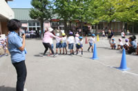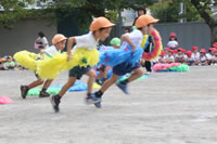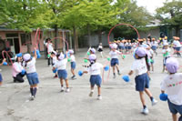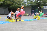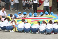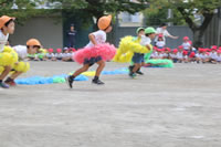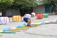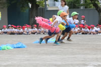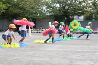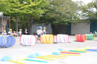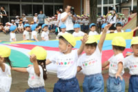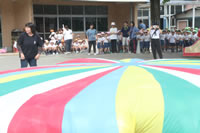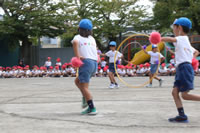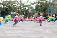 朝に入場行進と体操をしたら、リズムにかけっこ競技や玉入れにパラバルーンと、