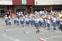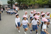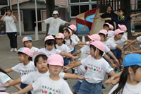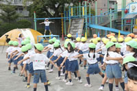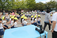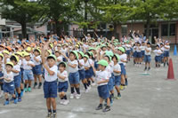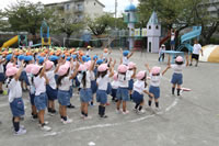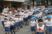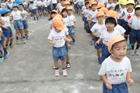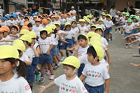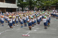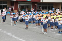 朝に入場行進と体操をしたら、リズムにかけっこ競技や玉入れにパラバルーンと、
