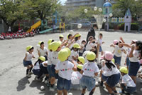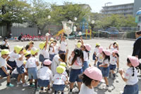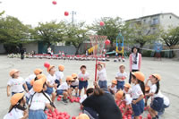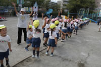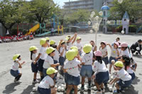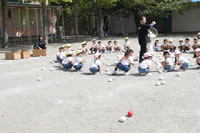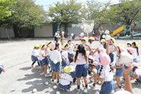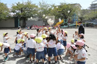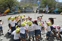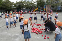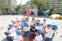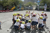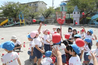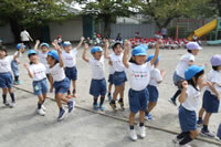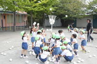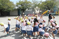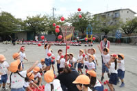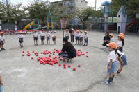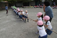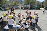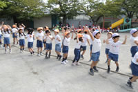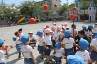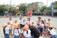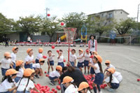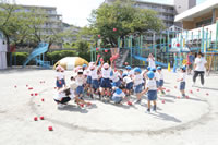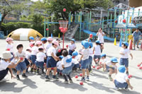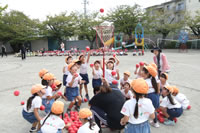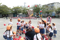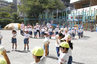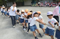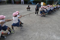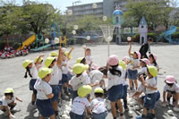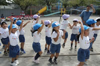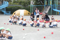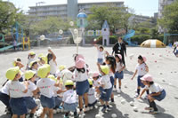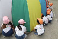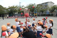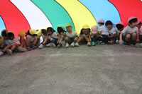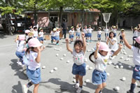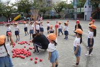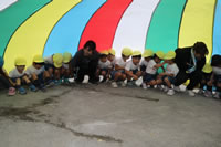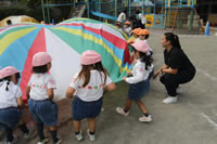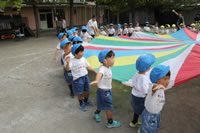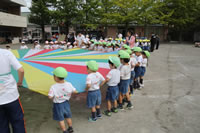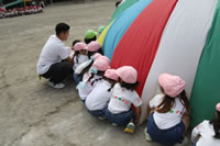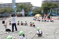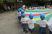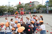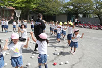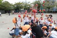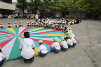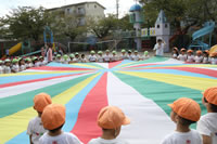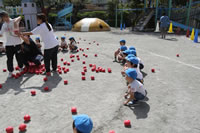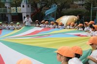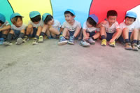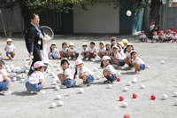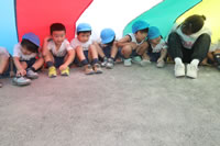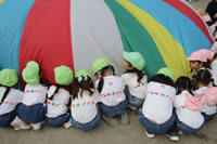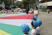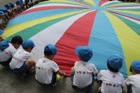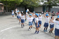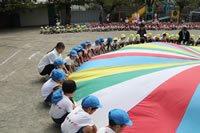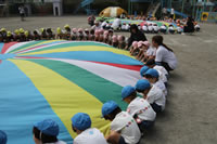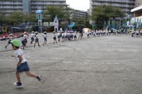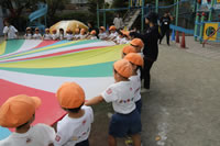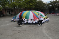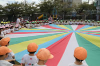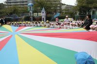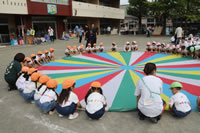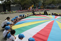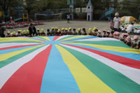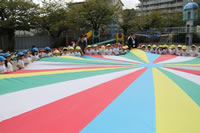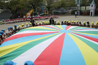 朝に入場行進と体操をしたら、リズムにかけっこ競技や玉入れにパラバルーンと、
