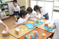 星組では、ブロック遊びに粘土遊び、クレヨンでのお絵かきに