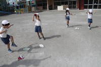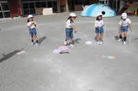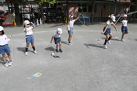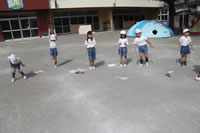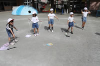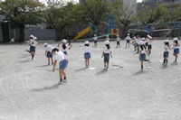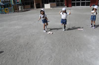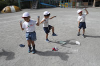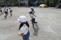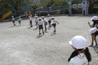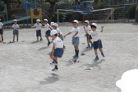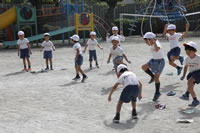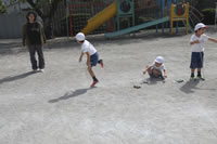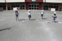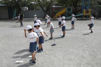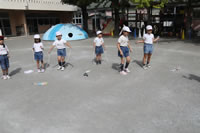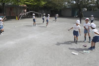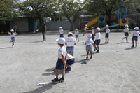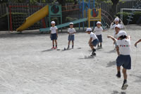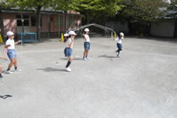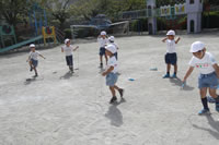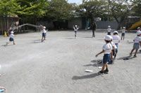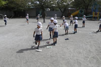 大きいお庭で体育指導。