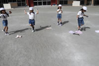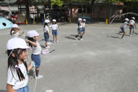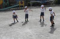 なわとびを回したり跳んだり歩いたりして遊びます。