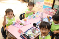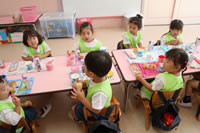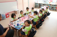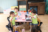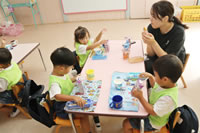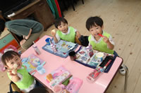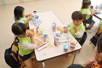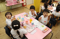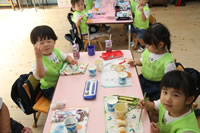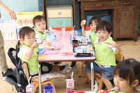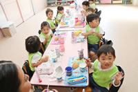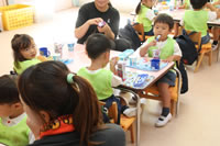 しっかり食べて午後からの保育に備えての栄養補給に水分補給もばっちりです。