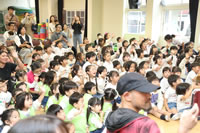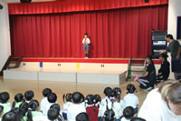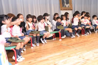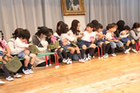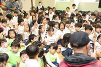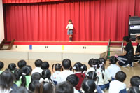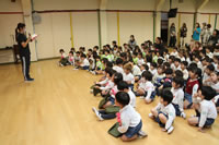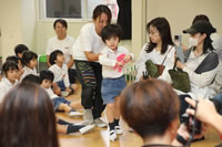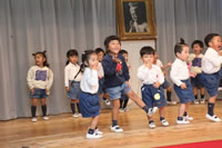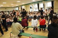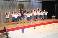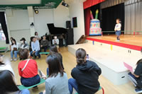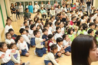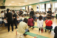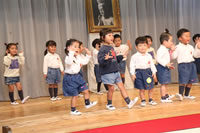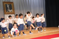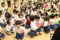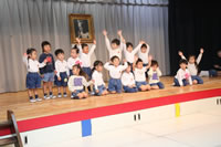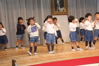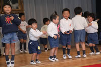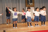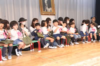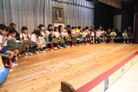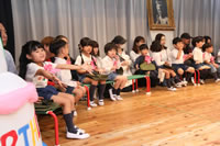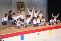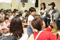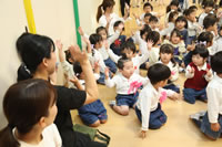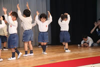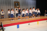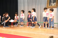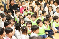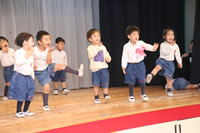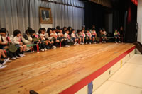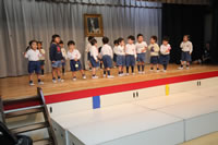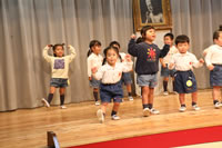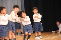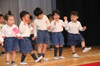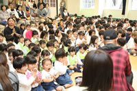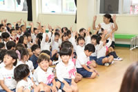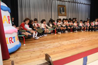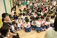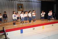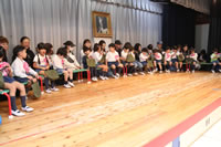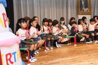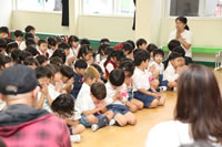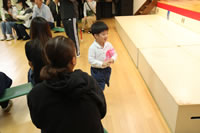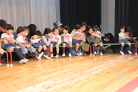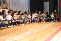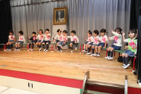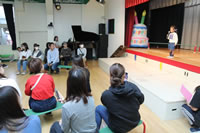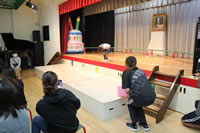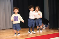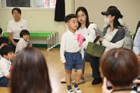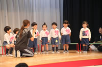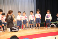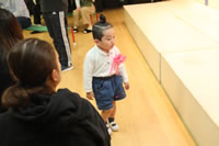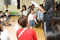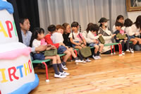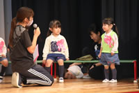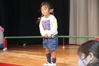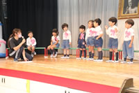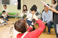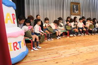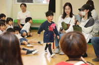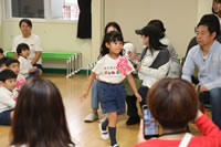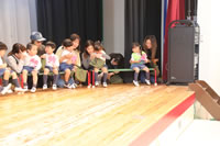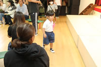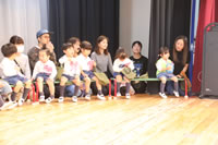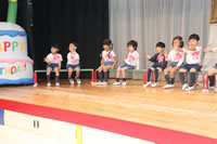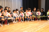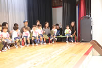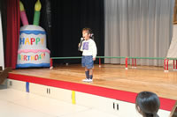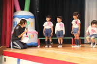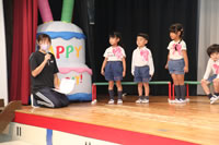 10月が誕生月の子とおうちの方に舞台へ出てきてもらい、歌や踊り、手遊びにインタビューでお祝い。