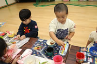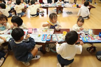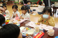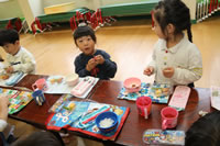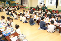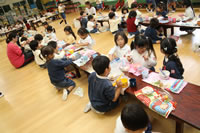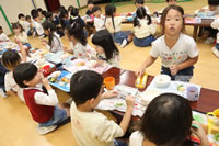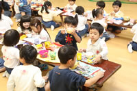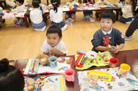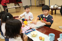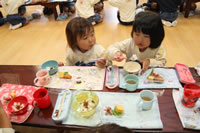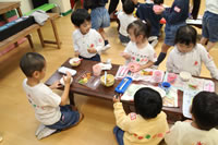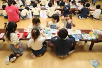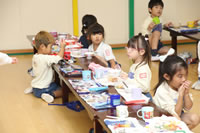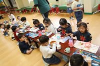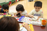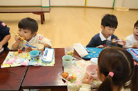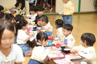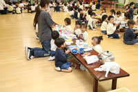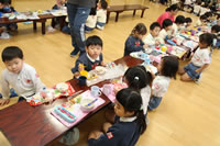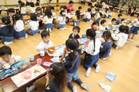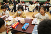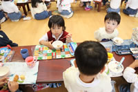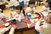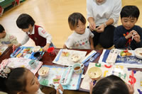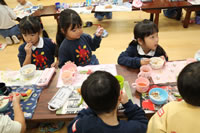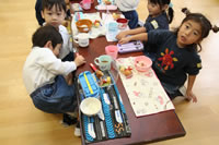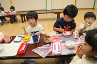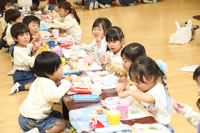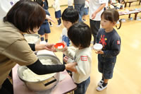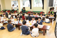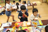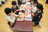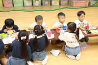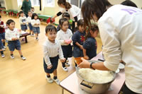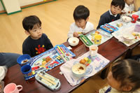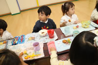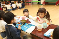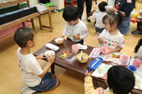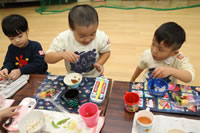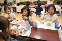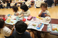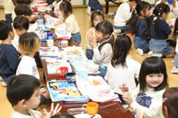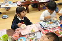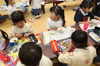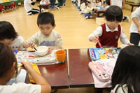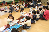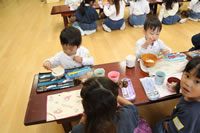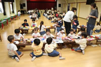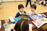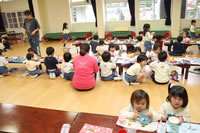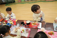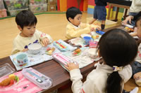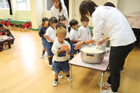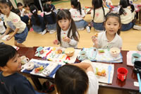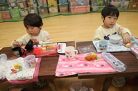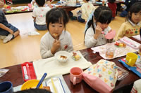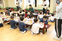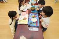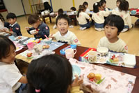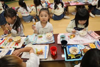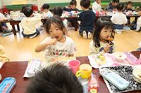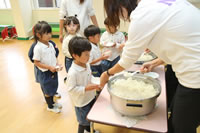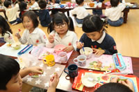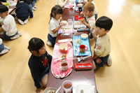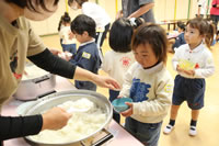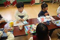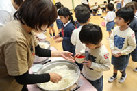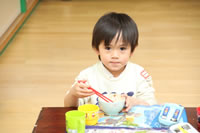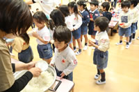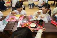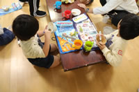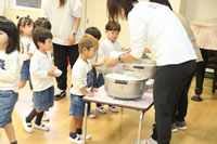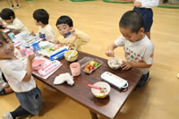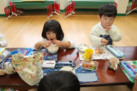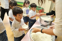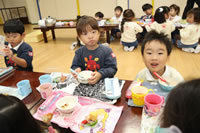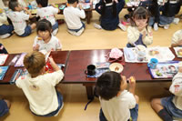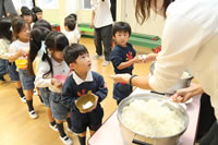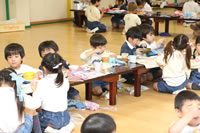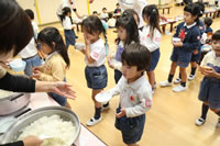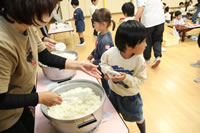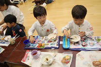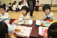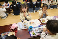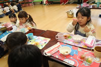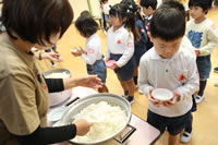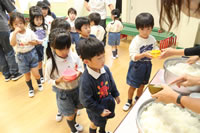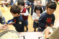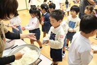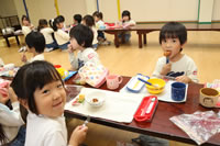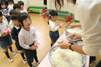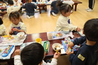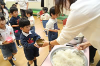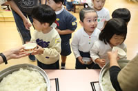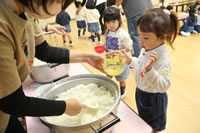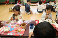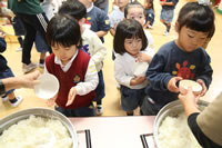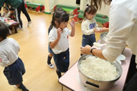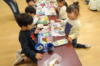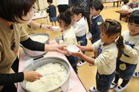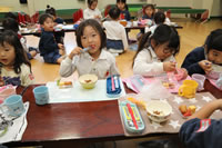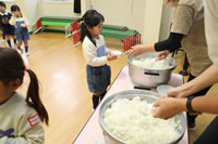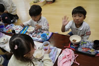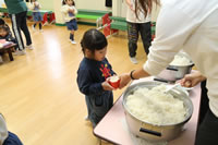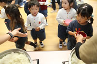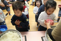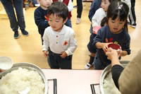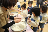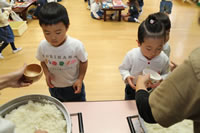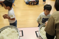 昨日に続いて今日はひよこ・雪組がほかほかごはん給食。