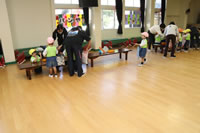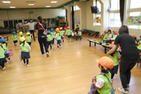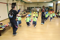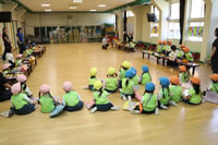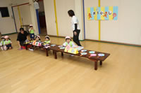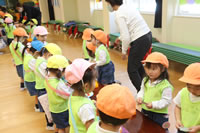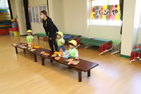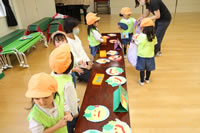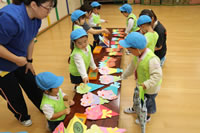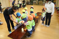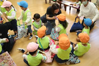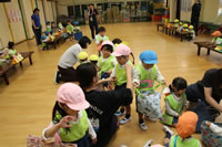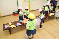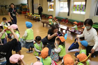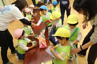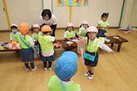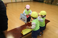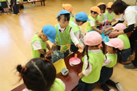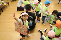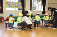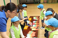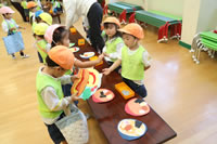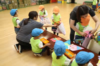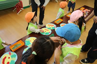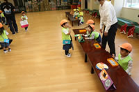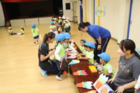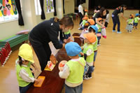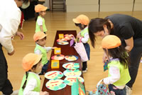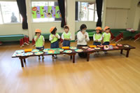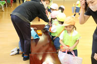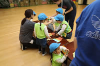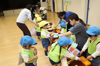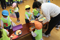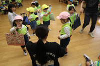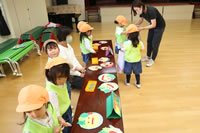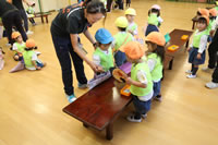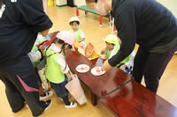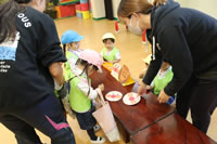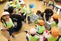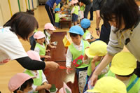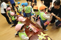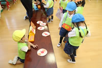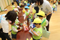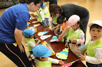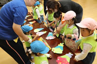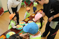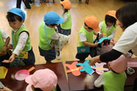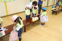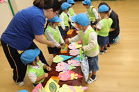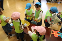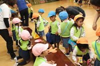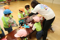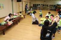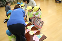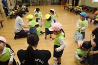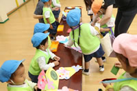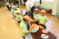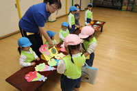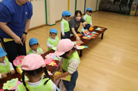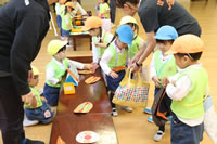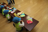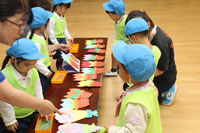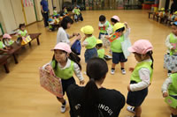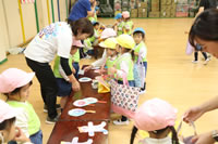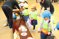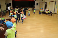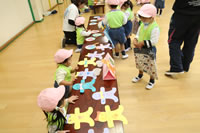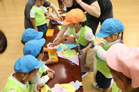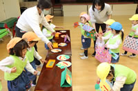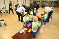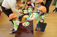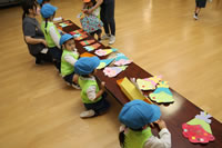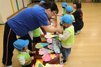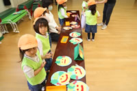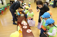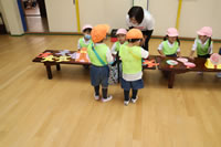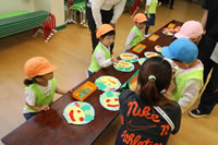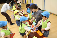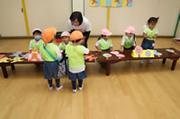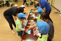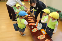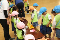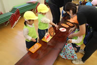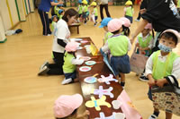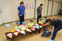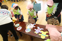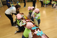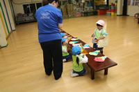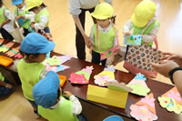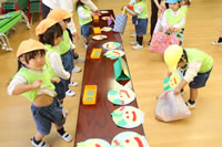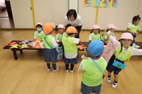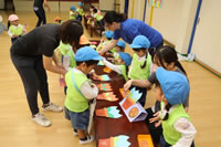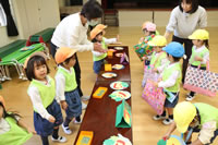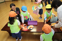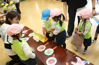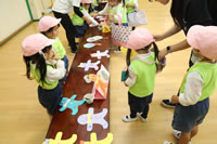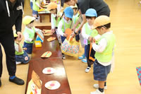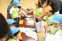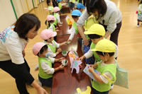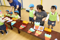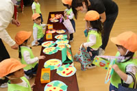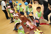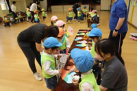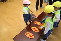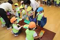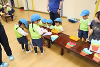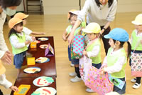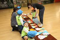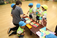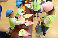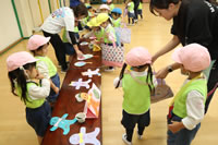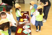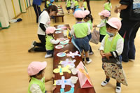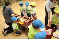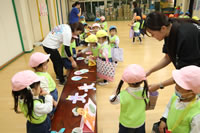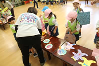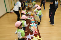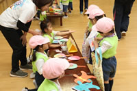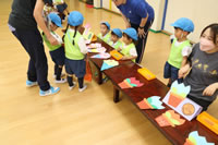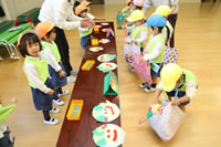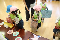 お店屋さんとお客さんに分かれて、みんなで作った様々な商品を紙で作ったお金で買っていきます。