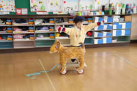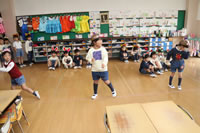 音楽に合わせて先生のお手本を見ながら舞踊劇を練習。