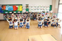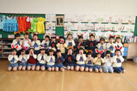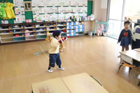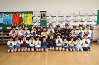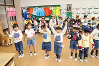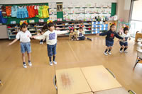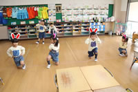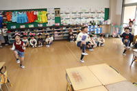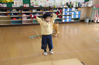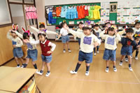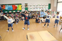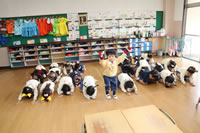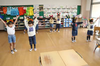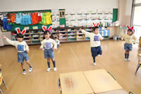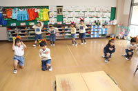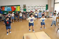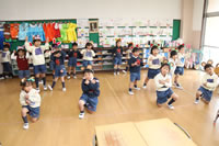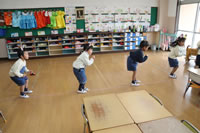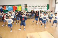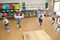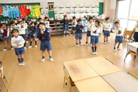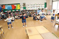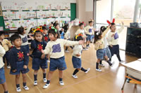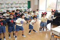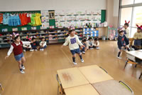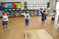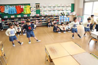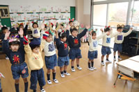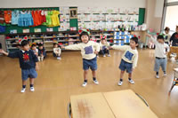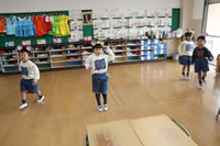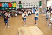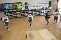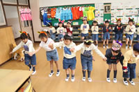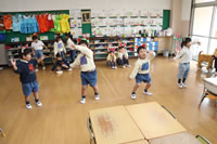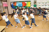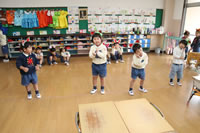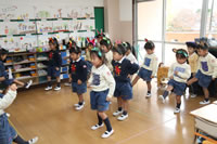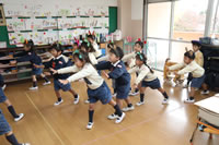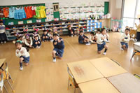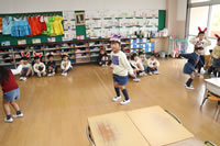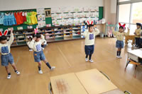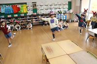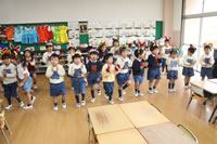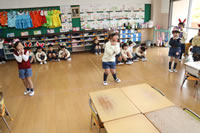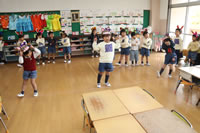 教室で成道会遊戯会の練習
