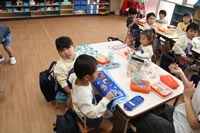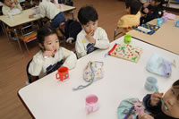 しっかり食べておなかいっぱいになったら、片づけをしてごしごし歯磨きをしていきます。