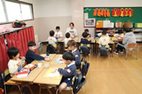 保育の後は給食の時間。今日のメニューはチキン南蛮にごはん。