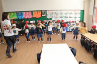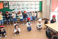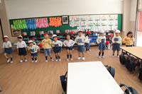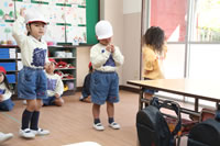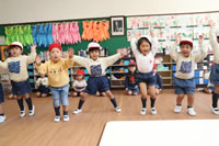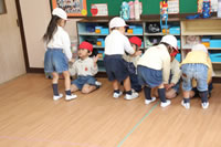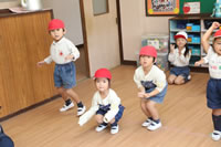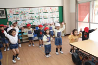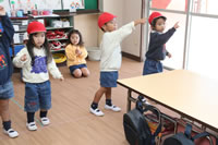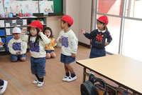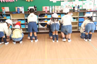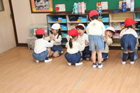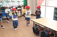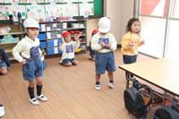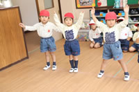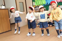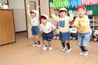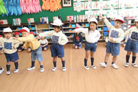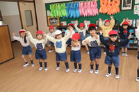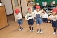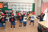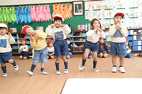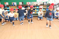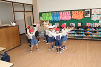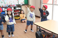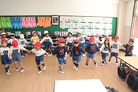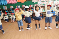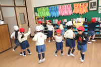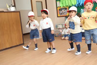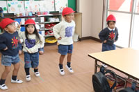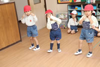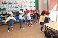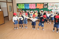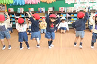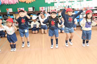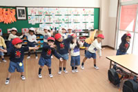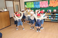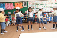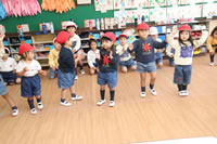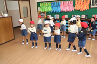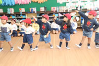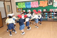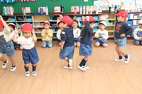 音楽に合わせて隊形を変えたり踊ったりしていきます。