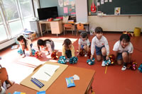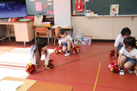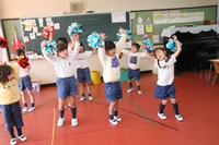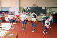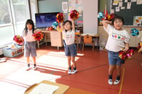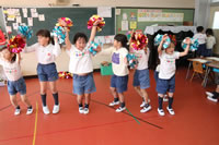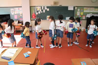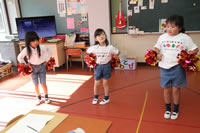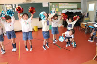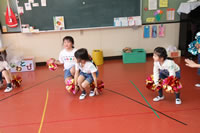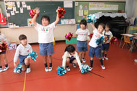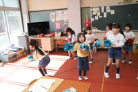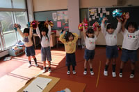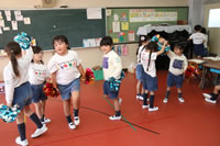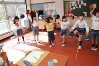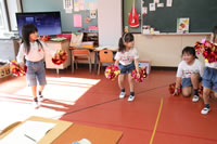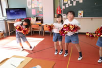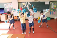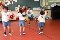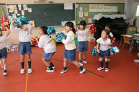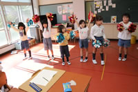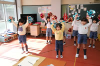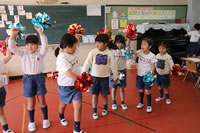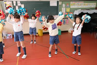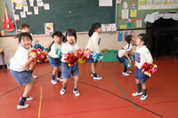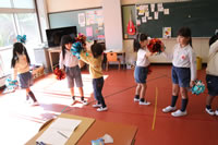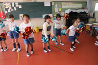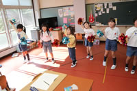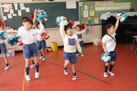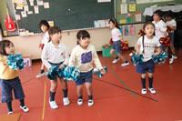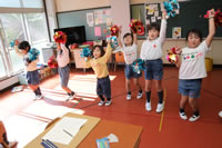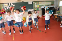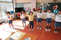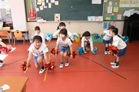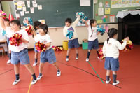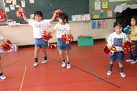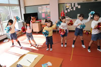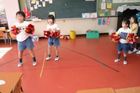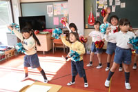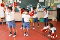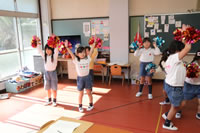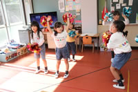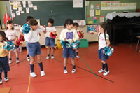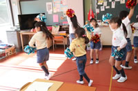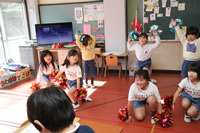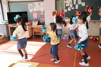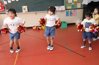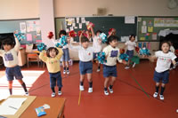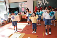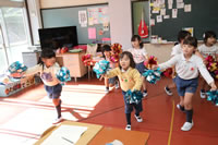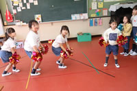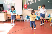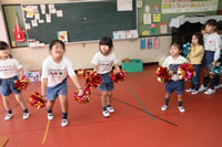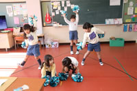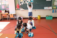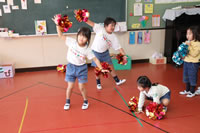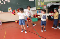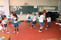 音楽に合わせて隊形を変えたり踊ったりしていきます。