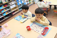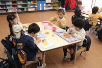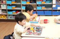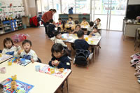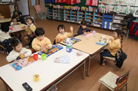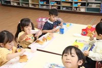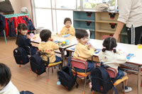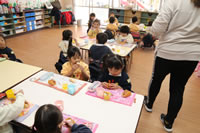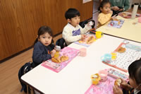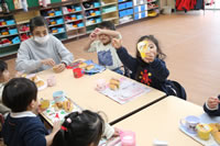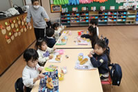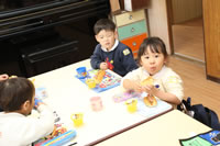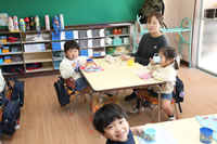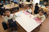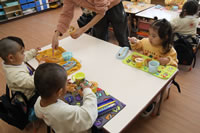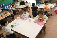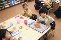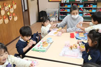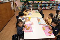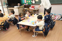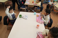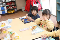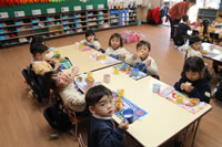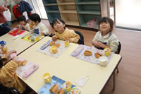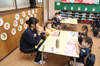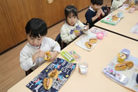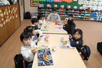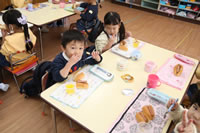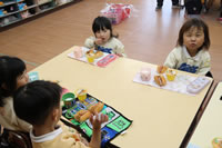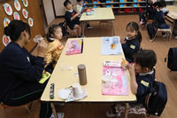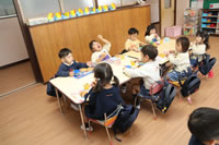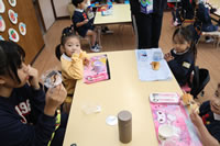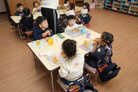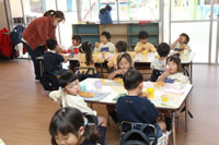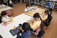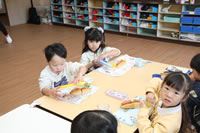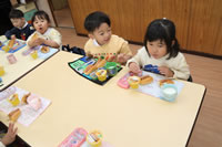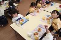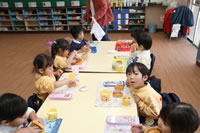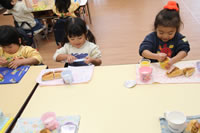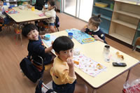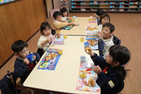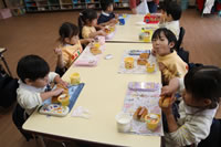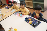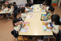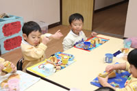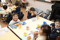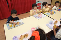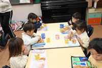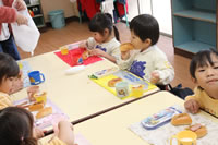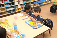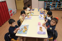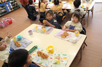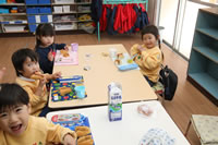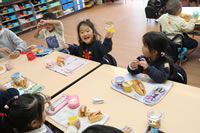 おなかいっぱい食べて、午後からの保育に備えた栄養補給に水分補給もばっちりです。