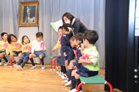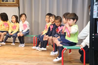 12月が誕生月の子とおうちの方が舞台に出てきて、12月の誕生会1グループを行いました。