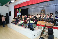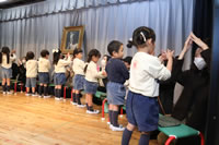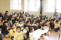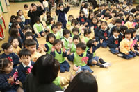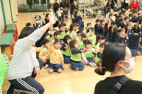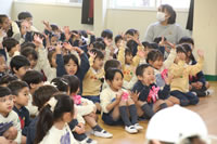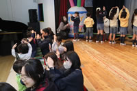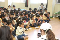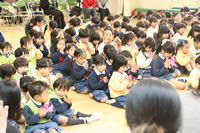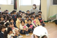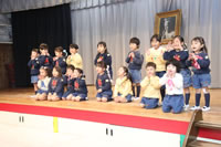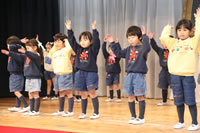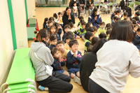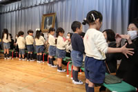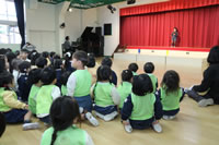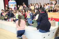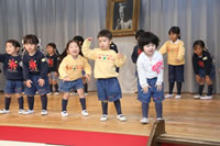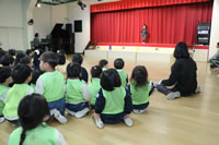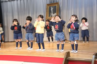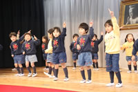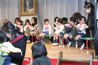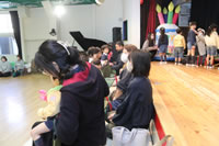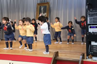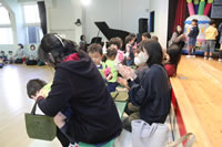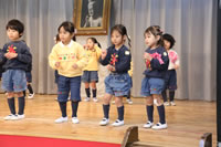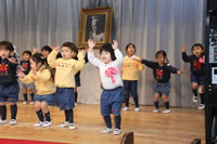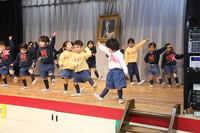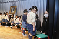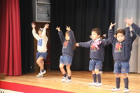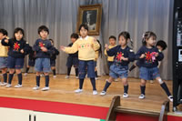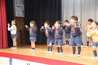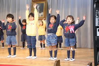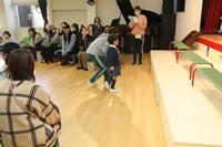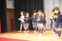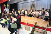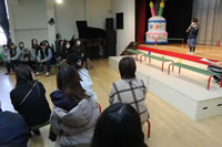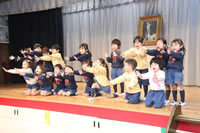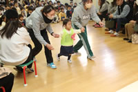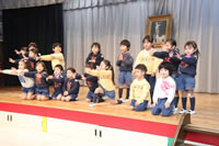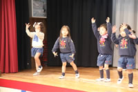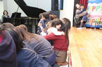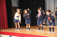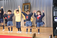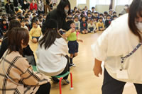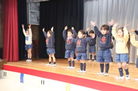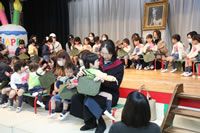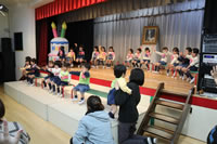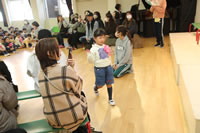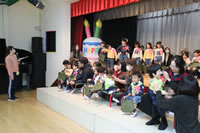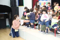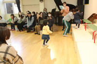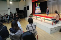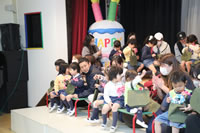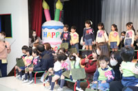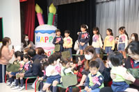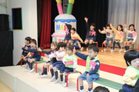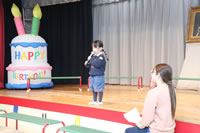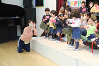 12月が誕生月の子とおうちの方が舞台に出てきて、歌や踊り、手遊びにインタビューでお祝い。