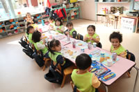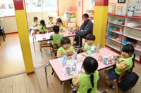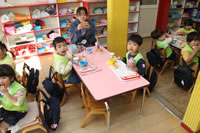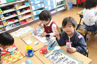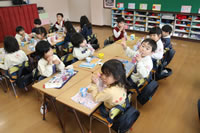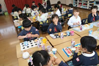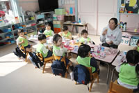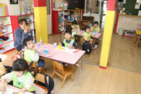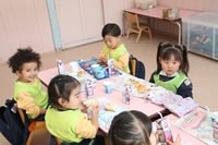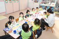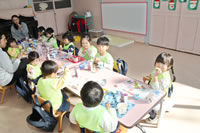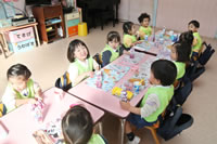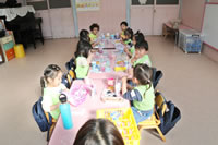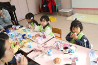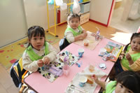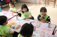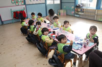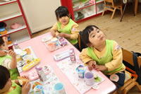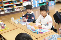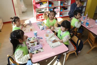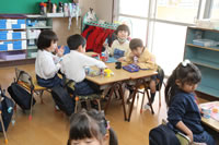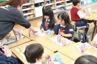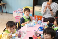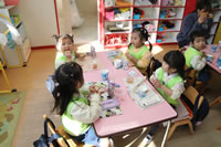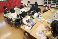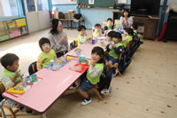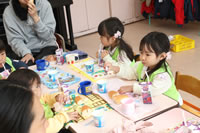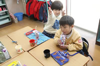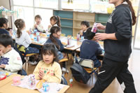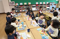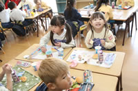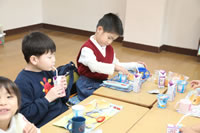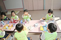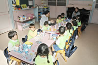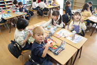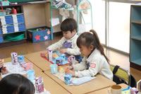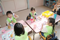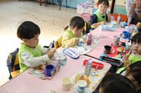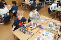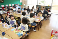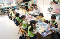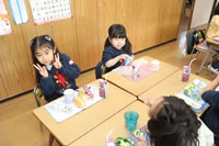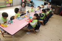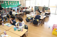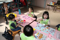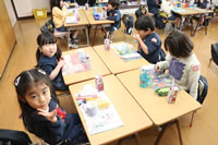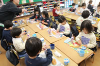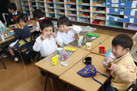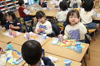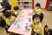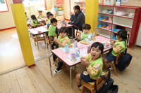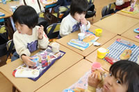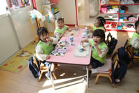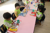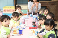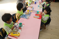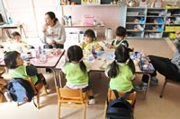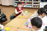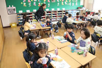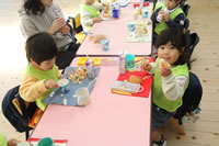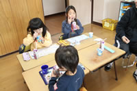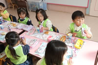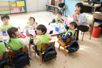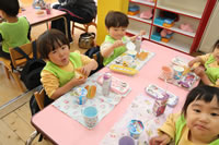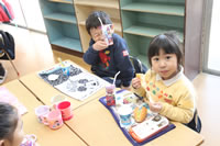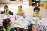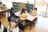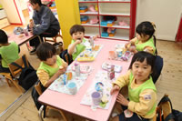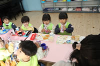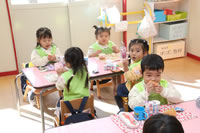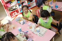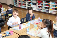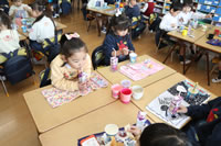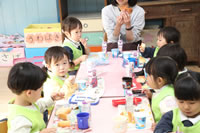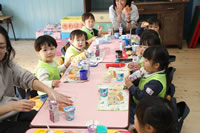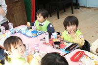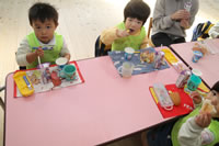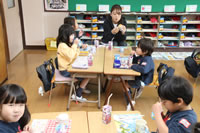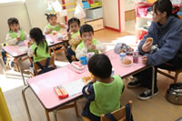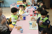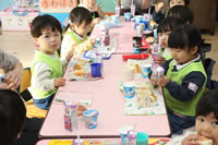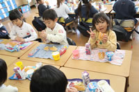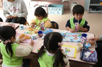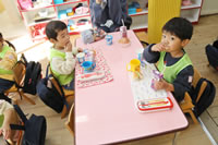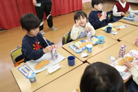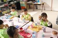 保育の後は給食の時間。今日のメニューはハムサンドにヨーグルト。
