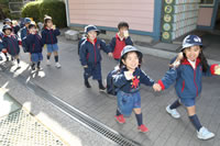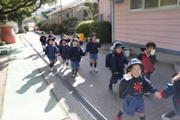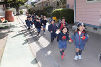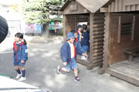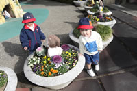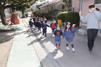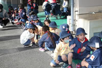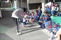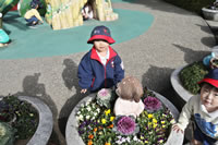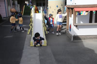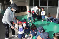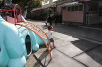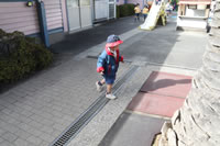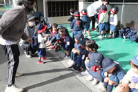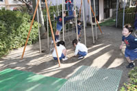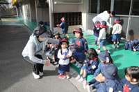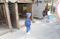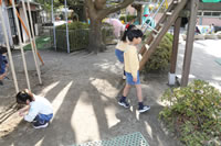 保育の後の帰りの時間。帰りのしたくをしたらお庭に出てきて外遊び。