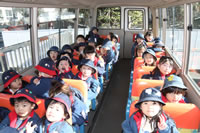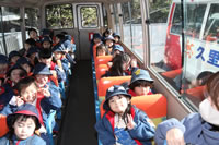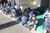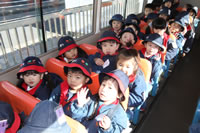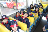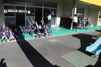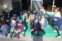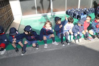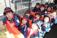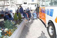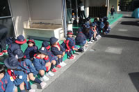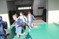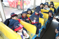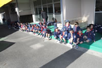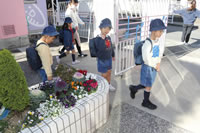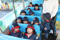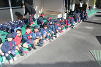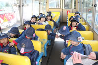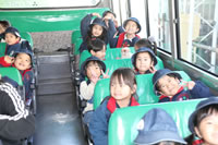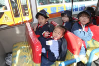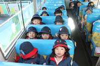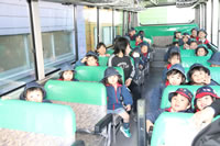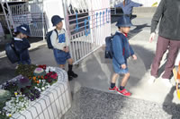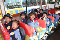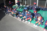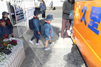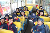 時間になったらバス停に集まって、順番に帰ります。今日は新学期始業日で午前保育となります。