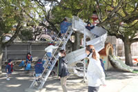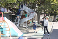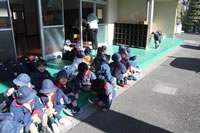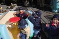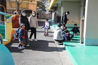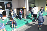 教室で持ち帰っていた物をしまっていったら、お庭に出てきて外遊び。