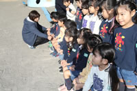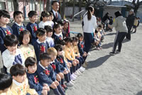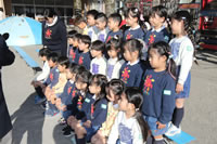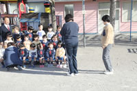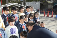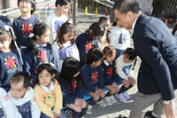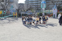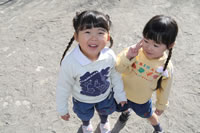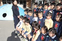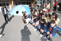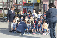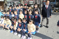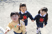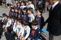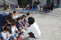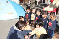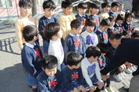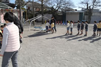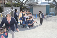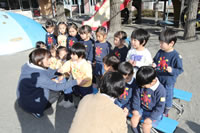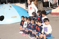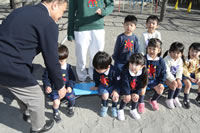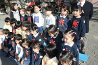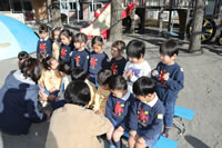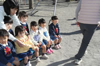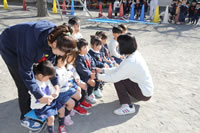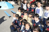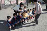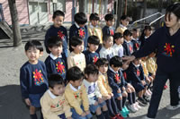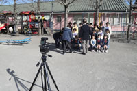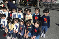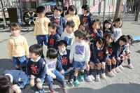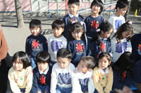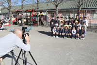 大きいお庭でクラスごとに並んで写真をぱちり。みんな揃って上手に笑顔で撮れました。