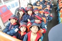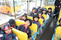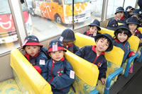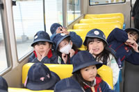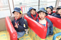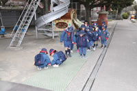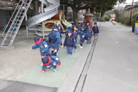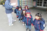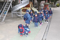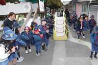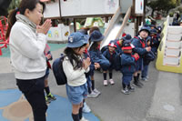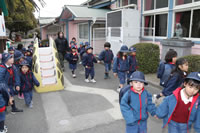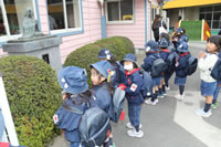 保育の後は帰りの時間。カバンを背負って帽子をかぶったら帰りのしたく完了。