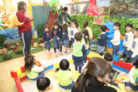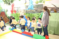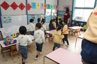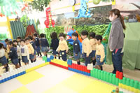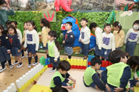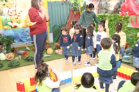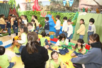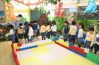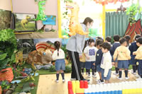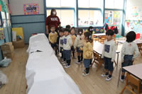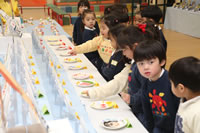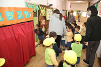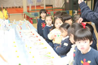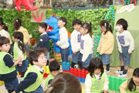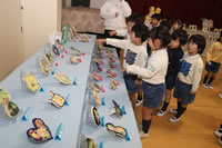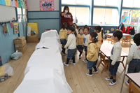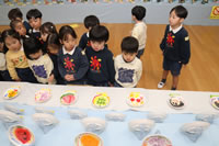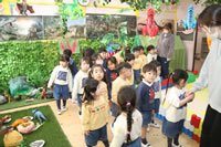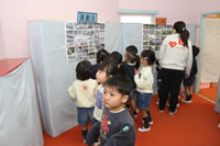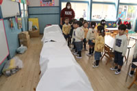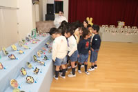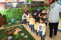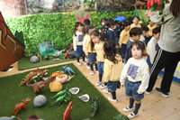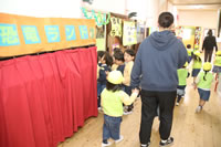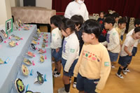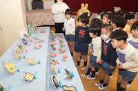 間近に迫った作品展に向けて、幼稚園南園舎は作品展仕様に切り替わりました。