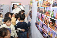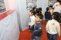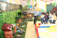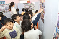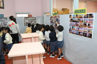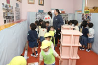 ホールで陶芸展示や、教室には恐竜コーナーや郵便コーナーに写真コーナーなど、楽しいスペースが目白押しです。