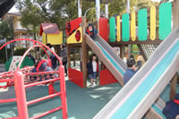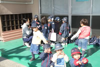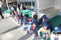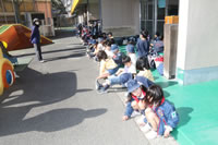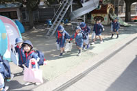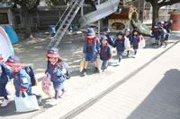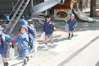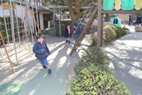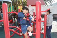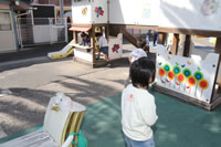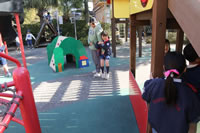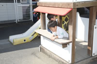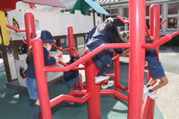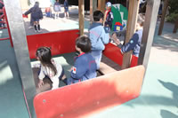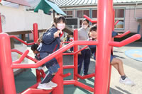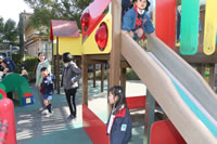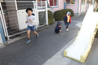 帰りの時間の外遊び。お庭の遊具で遊んだりかけっこをしたりしました。