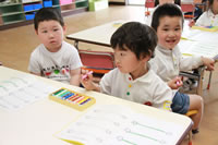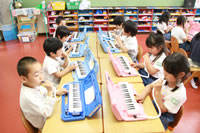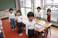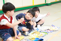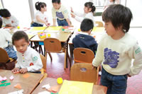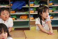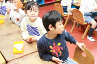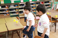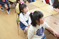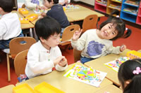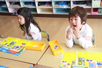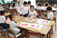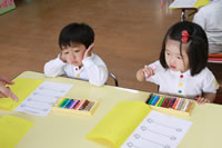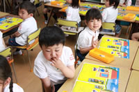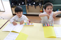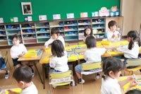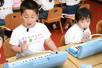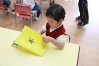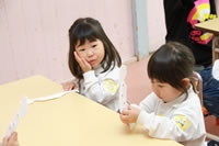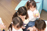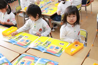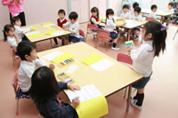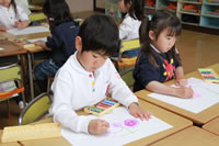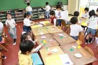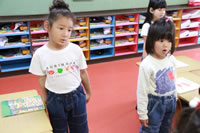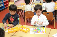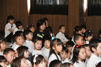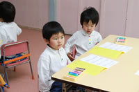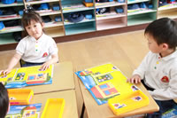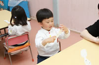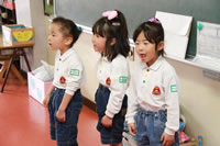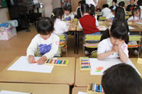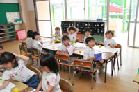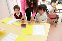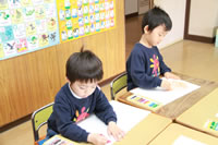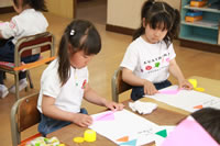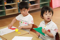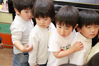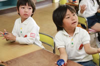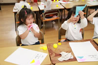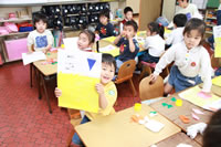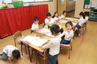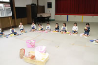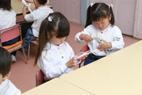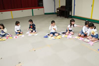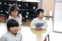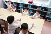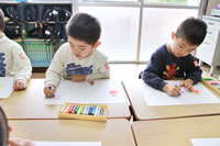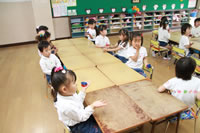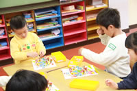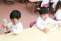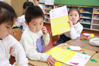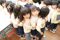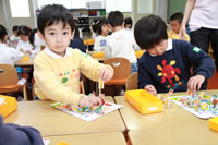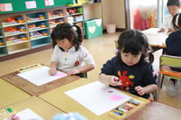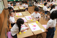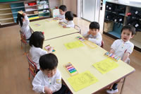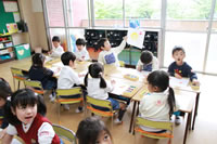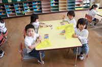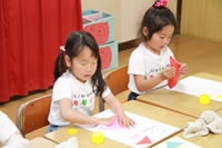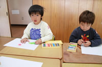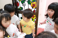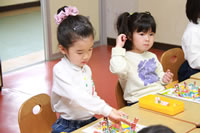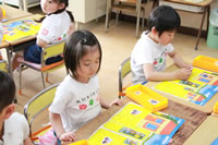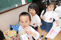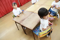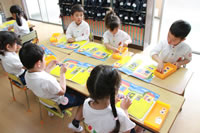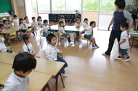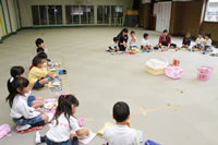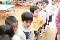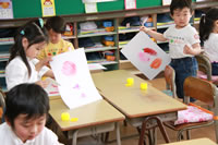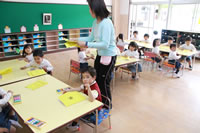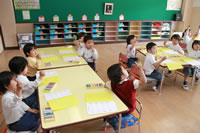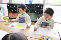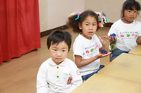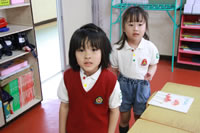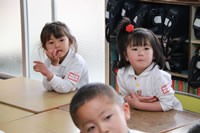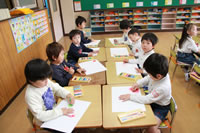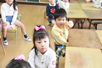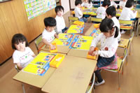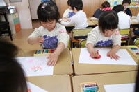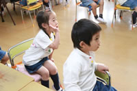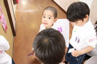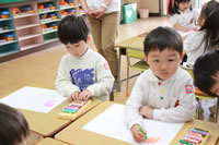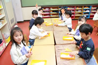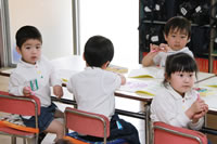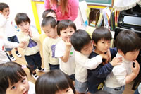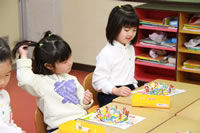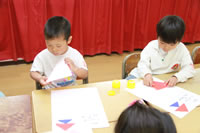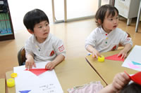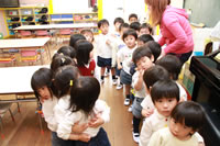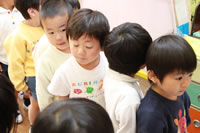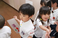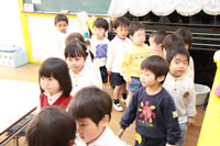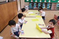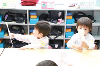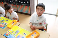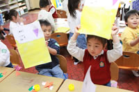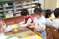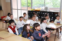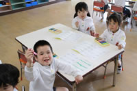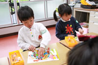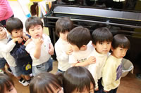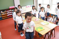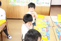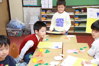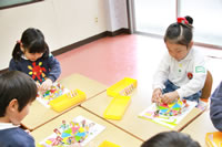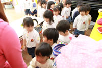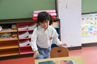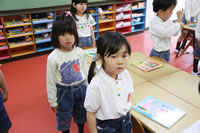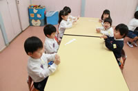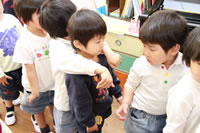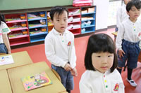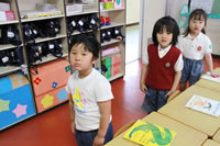 ●最新の幼稚園の様子をお届けします 最新の写真はこちらへ このコーナーでは、今週の幼稚園の様子を写真で紹介していきます。 5月11日 教室(雪3・5・星1・2・6・7・ひな)・マック給食(星3) ■教室(雪3・5・星1・2・6・7・ひな) 雪3 クレヨンを使ってお絵かきをしていました。 今日は果物の絵。ミカンやリンゴやパイナップル。色とりどりの果物を描きます。 ![]() ![]() ![]() ![]() ![]() ![]() 雪5 大きさの遊びをしていました。 象さんのお皿とひよこさんのお皿があります。大小二種類の果物は、どっちをどっちのお皿に置けば良いかな。 ![]() ![]() ![]() ![]() ![]() ![]() ![]() ![]() 星1 折り紙を使って製作をしていました。 形に折った折り紙を、台紙にのりづけして野菜の形にしていきます。 ![]() ![]() ![]() ![]() ![]() ![]() 星2 線と文字の遊びをしていました。 波線やぐるぐるの点線を、鉛筆を使って順番になぞっていきます。 ![]() ![]() ![]() ![]() ![]() ![]() 星6 ファーストの教材を使ってかずの遊びをしていました。 馬さんとくまさんとウサギさんの数が同じか確認します。馬さんにくまさんを乗せたら次はどうするのかな。 ![]() ![]() ![]() ![]() ![]() ![]() ![]() 星7 折り紙を使って製作をしていました。 形に折った三色の折り紙を、台紙に貼り付けて、にんじん・大根・さつま芋を表現します。 ![]() ![]() ![]() ![]() ![]() ![]() ひな ボール遊びをしていました。 みんなで丸く座って、お友だちからお友だちにボールを転がして遊びます。 ![]() ![]() ![]() ![]() ![]() ■ホールでマック給食(星3) ホールに集まってマック給食をしました。 ハンバーガーを大きなお口でぱくり!ポテトとナゲットも食べました。 ![]() ![]() ![]() ![]() ![]() ![]() ![]() 5月10日 おひさま文庫返却(森C)・教室(森B・C・ひよこ6・7・かっこう・雪1・2・6・7) ■おひさま文庫返却(森C) おひさま文庫で借りていた本の返却をしていました。 リーダーさんに貸出カードを確認してもらったら、背表紙に貼ってあるシールの色と同じ色の本棚に戻します。 ![]() ![]() ![]() ![]() ![]() ■教室の様子(森B・C・ひよこ6・7・かっこう・雪1・2・6・7) 森B 朝の歌を歌っていました。 先生の弾くピアノに合わせて、今月の歌を歌います。 ![]() ![]() ![]() ![]() ![]() ![]() ![]() ![]() 森C ピアニカを使ってリズム遊びをしていました。 ドレミを一音だけ使って順番に弾いた後、最後にソから順番に一音ずつ下げて弾きます。 ![]() ![]() ![]() ![]() ![]() ![]() ![]() ひよこ6 クレヨンを使って線と文字の遊びをしていました。 点線の両端に絵が描いてあります、その絵から絵までをクレヨンを使ってなぞっていきます。 ![]() ![]() ![]() ![]() ![]() ![]() ひよこ7 クレヨンを使って線と文字の遊びをしていました。 点線の両端にひよこと鶏の絵が描いてあります。ひよこから鶏まで線を引いて、直線の感覚を覚えます。 ![]() ![]() ![]() ![]() ![]() ![]() かっこう クレヨンを使ってお絵かきをしていました。 今日は果物の絵を描きました。色とりどりの果物がおいしそうですね。 ![]() ![]() ![]() ![]() ![]() ![]() ![]() ![]() ![]() ![]() 雪1 カスタネットでリズム遊びをしていました。 先生の言う言葉に合わせて、「りんご」なら3回、「おかあさん」なら5回と、言葉の数だけ叩きます。 ![]() ![]() ![]() ![]() ![]() ![]() ![]() 雪2 ファーストの教材を使って大きさの遊びをしていました。 大きなお庭の犬さんと、小さいお庭の猫さん。大きな自転車と小さな自転車はどっちに置けば大きさに合うかな。 ![]() ![]() ![]() ![]() ![]() ![]() ![]() ![]() ![]() 雪6 大きさの遊びをしていました。 象さんとひよこさんに、大きなミカンと小さいみかんをあげるとしたら、どっちのみかんをあげればいいかな。 ![]() ![]() ![]() ![]() ![]() ![]() ![]() ![]() 雪7 折り紙とのりで制作をしていました。 折り紙を折って形にしたものを、題名のついた紙にのりづけしていきます。 ![]() ![]() ![]() ![]() ![]() ![]() ![]() 5月9日 ホールでスライド上映・教室(ひよこ1〜5) ■ホールでスライド上映 ホールに集まってスライド上映会。今日は『仏様の生まれた日』のお話です。 その後にはもう一つ別のお話も見ましたよ。 年長 ![]() ![]() ![]() ![]() ![]() ![]() ![]() ![]() 年少・中・ひな ![]() ![]() ![]() ![]() ![]() ![]() ![]() ![]() ■教室の様子(ひよこ1〜5) ひよこ1 クレヨンを使って線と文字の遊びをしていました。 クレヨンを出してきて、点線に沿ってまっすぐな線を書いていきます。 ![]() ![]() ![]() ![]() ![]() ![]() ひよこ2 ファーストの教材を使ってポーズの遊びをしていました。 ポーズを変えられるお人形さんを使って、好きなポーズを取らせて遊びます。 ![]() ![]() ![]() ![]() ![]() ![]() ひよこ3 ブロック遊びをしていました。 色々な形に三色のたくさんのブロックの中から、先生と同じブロックを探します。 ![]() ![]() ![]() ![]() ![]() ![]() ひよこ5 背の順を練習していました。 先生に順番を教えてもらって、2列に背の順で並びます。並んだ後は、そのまま教室を一周歩いてみました。 ![]() ![]() ![]() ![]() ![]() ![]() ![]() |