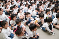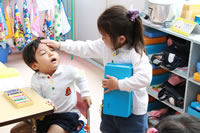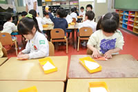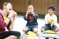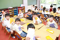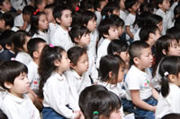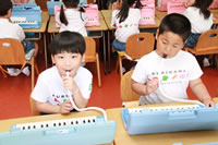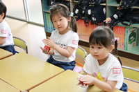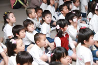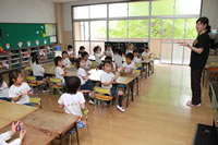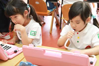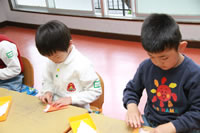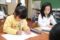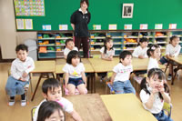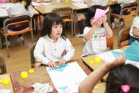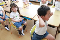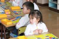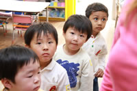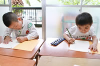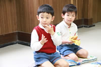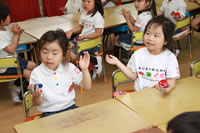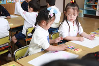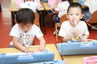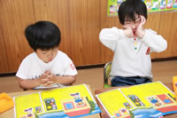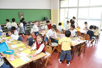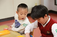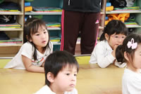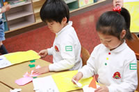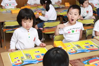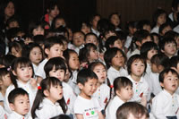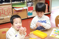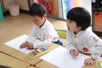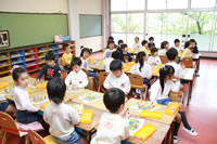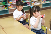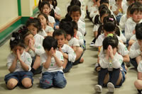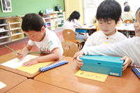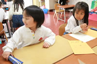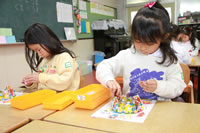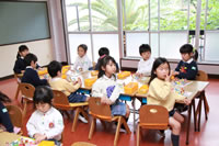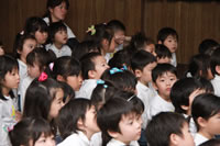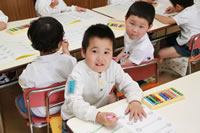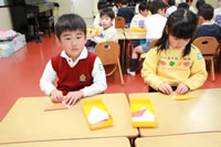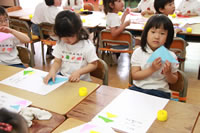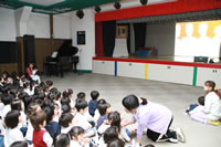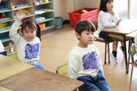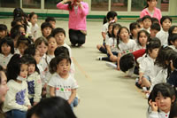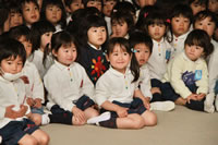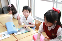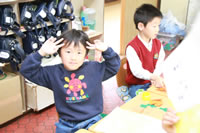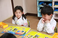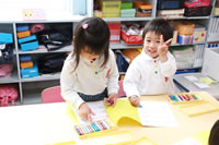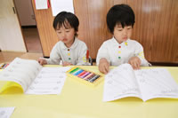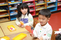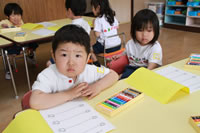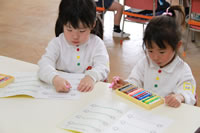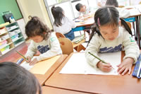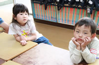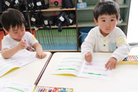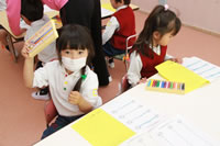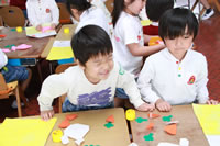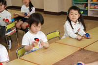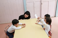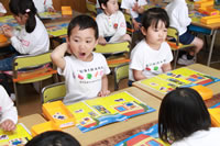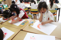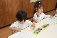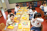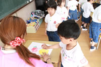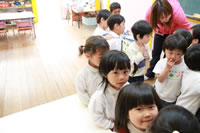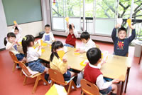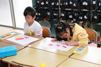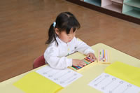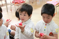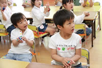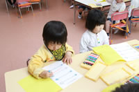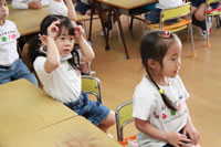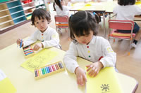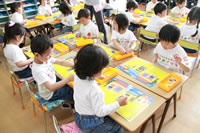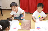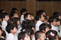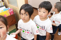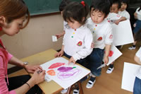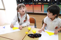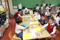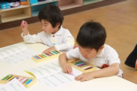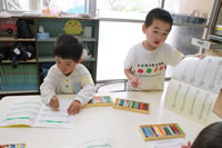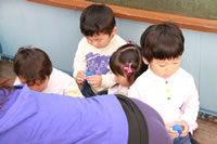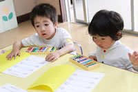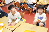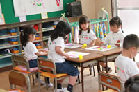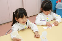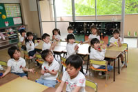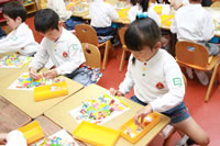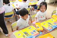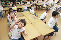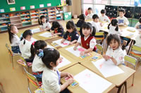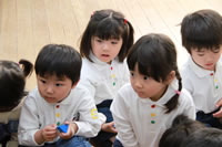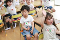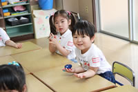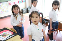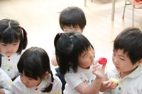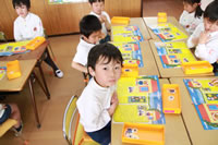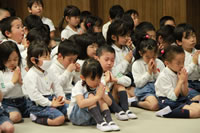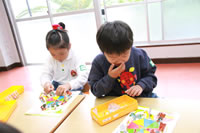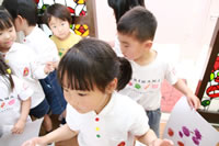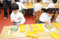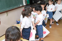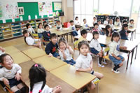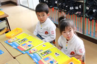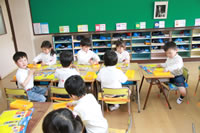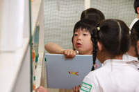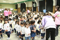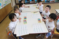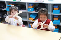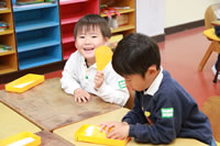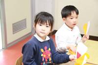 ●最新の幼稚園の様子をお届けします 最新の写真はこちらへ このコーナーでは、今週の幼稚園の様子を写真で紹介していきます。 5月11日 教室(雪3・5・星1・2・6・7・ひな)・マック給食(星3) ■教室(雪3・5・星1・2・6・7・ひな) 雪3 クレヨンを使ってお絵かきをしていました。 今日は果物の絵。ミカンやリンゴやパイナップル。色とりどりの果物を描きます。 ![]() ![]() ![]() ![]() ![]() ![]() 雪5 大きさの遊びをしていました。 象さんのお皿とひよこさんのお皿があります。大小二種類の果物は、どっちをどっちのお皿に置けば良いかな。 ![]() ![]() ![]() ![]() ![]() ![]() ![]() ![]() 星1 折り紙を使って製作をしていました。 形に折った折り紙を、台紙にのりづけして野菜の形にしていきます。 ![]() ![]() ![]() ![]() ![]() ![]() 星2 線と文字の遊びをしていました。 波線やぐるぐるの点線を、鉛筆を使って順番になぞっていきます。 ![]() ![]() ![]() ![]() ![]() ![]() 星6 ファーストの教材を使ってかずの遊びをしていました。 馬さんとくまさんとウサギさんの数が同じか確認します。馬さんにくまさんを乗せたら次はどうするのかな。 ![]() ![]() ![]() ![]() ![]() ![]() ![]() 星7 折り紙を使って製作をしていました。 形に折った三色の折り紙を、台紙に貼り付けて、にんじん・大根・さつま芋を表現します。 ![]() ![]() ![]() ![]() ![]() ![]() ひな ボール遊びをしていました。 みんなで丸く座って、お友だちからお友だちにボールを転がして遊びます。 ![]() ![]() ![]() ![]() ![]() ■ホールでマック給食(星3) ホールに集まってマック給食をしました。 ハンバーガーを大きなお口でぱくり!ポテトとナゲットも食べました。 ![]() ![]() ![]() ![]() ![]() ![]() ![]() 5月10日 おひさま文庫返却(森C)・教室(森B・C・ひよこ6・7・かっこう・雪1・2・6・7) ■おひさま文庫返却(森C) おひさま文庫で借りていた本の返却をしていました。 リーダーさんに貸出カードを確認してもらったら、背表紙に貼ってあるシールの色と同じ色の本棚に戻します。 ![]() ![]() ![]() ![]() ![]() ■教室の様子(森B・C・ひよこ6・7・かっこう・雪1・2・6・7) 森B 朝の歌を歌っていました。 先生の弾くピアノに合わせて、今月の歌を歌います。 ![]() ![]() ![]() ![]() ![]() ![]() ![]() ![]() 森C ピアニカを使ってリズム遊びをしていました。 ドレミを一音だけ使って順番に弾いた後、最後にソから順番に一音ずつ下げて弾きます。 ![]() ![]() ![]() ![]() ![]() ![]() ![]() ひよこ6 クレヨンを使って線と文字の遊びをしていました。 点線の両端に絵が描いてあります、その絵から絵までをクレヨンを使ってなぞっていきます。 ![]() ![]() ![]() ![]() ![]() ![]() ひよこ7 クレヨンを使って線と文字の遊びをしていました。 点線の両端にひよこと鶏の絵が描いてあります。ひよこから鶏まで線を引いて、直線の感覚を覚えます。 ![]() ![]() ![]() ![]() ![]() ![]() かっこう クレヨンを使ってお絵かきをしていました。 今日は果物の絵を描きました。色とりどりの果物がおいしそうですね。 ![]() ![]() ![]() ![]() ![]() ![]() ![]() ![]() ![]() ![]() 雪1 カスタネットでリズム遊びをしていました。 先生の言う言葉に合わせて、「りんご」なら3回、「おかあさん」なら5回と、言葉の数だけ叩きます。 ![]() ![]() ![]() ![]() ![]() ![]() ![]() 雪2 ファーストの教材を使って大きさの遊びをしていました。 大きなお庭の犬さんと、小さいお庭の猫さん。大きな自転車と小さな自転車はどっちに置けば大きさに合うかな。 ![]() ![]() ![]() ![]() ![]() ![]() ![]() ![]() ![]() 雪6 大きさの遊びをしていました。 象さんとひよこさんに、大きなミカンと小さいみかんをあげるとしたら、どっちのみかんをあげればいいかな。 ![]() ![]() ![]() ![]() ![]() ![]() ![]() ![]() 雪7 折り紙とのりで制作をしていました。 折り紙を折って形にしたものを、題名のついた紙にのりづけしていきます。 ![]() ![]() ![]() ![]() ![]() ![]() ![]() 5月9日 ホールでスライド上映・教室(ひよこ1〜5) ■ホールでスライド上映 ホールに集まってスライド上映会。今日は『仏様の生まれた日』のお話です。 その後にはもう一つ別のお話も見ましたよ。 年長 ![]() ![]() ![]() ![]() ![]() ![]() ![]() ![]() 年少・中・ひな ![]() ![]() ![]() ![]() ![]() ![]() ![]() ![]() ■教室の様子(ひよこ1〜5) ひよこ1 クレヨンを使って線と文字の遊びをしていました。 クレヨンを出してきて、点線に沿ってまっすぐな線を書いていきます。 ![]() ![]() ![]() ![]() ![]() ![]() ひよこ2 ファーストの教材を使ってポーズの遊びをしていました。 ポーズを変えられるお人形さんを使って、好きなポーズを取らせて遊びます。 ![]() ![]() ![]() ![]() ![]() ![]() ひよこ3 ブロック遊びをしていました。 色々な形に三色のたくさんのブロックの中から、先生と同じブロックを探します。 ![]() ![]() ![]() ![]() ![]() ![]() ひよこ5 背の順を練習していました。 先生に順番を教えてもらって、2列に背の順で並びます。並んだ後は、そのまま教室を一周歩いてみました。 ![]() ![]() ![]() ![]() ![]() ![]() ![]() |